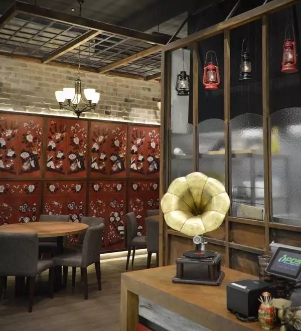 餐厅内以古朴的灰砖背景墙去协调深沉安静的木质桌椅,自然和谐,天然去雕饰的纯朴之风弥漫了每个角落;景观墙采用徽派历史悠久的砖雕艺术装点,营造出徽派文化独有的雅致氛围。