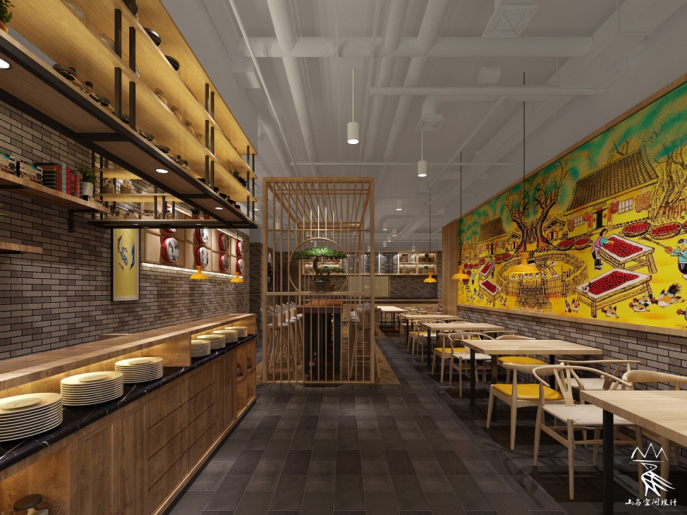 下面要介绍的就是一家由山鸟空间设计的陕西风味美食餐厅设计理念。